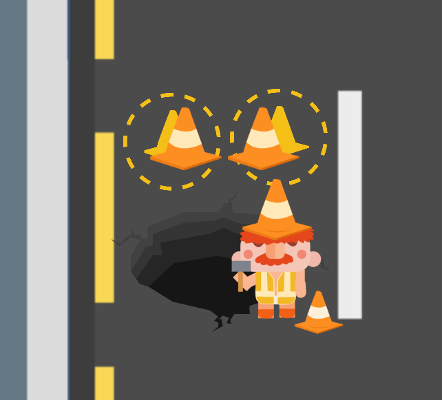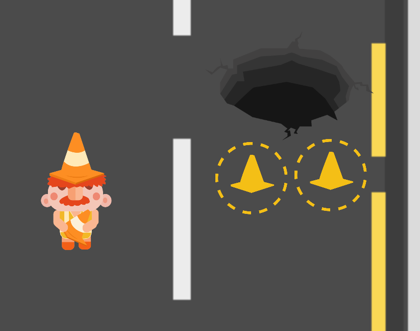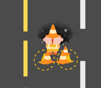 In Road Work Ahead, you play as a determined road worker tasked with fixing dangerous potholes on busy roads. Place traffic cones to block oncoming cars, giving you time to get the job done.